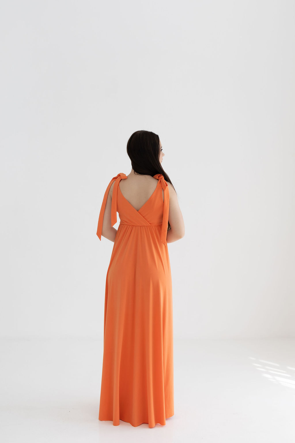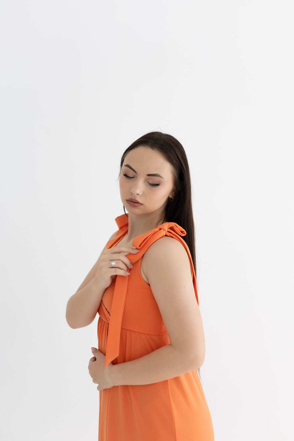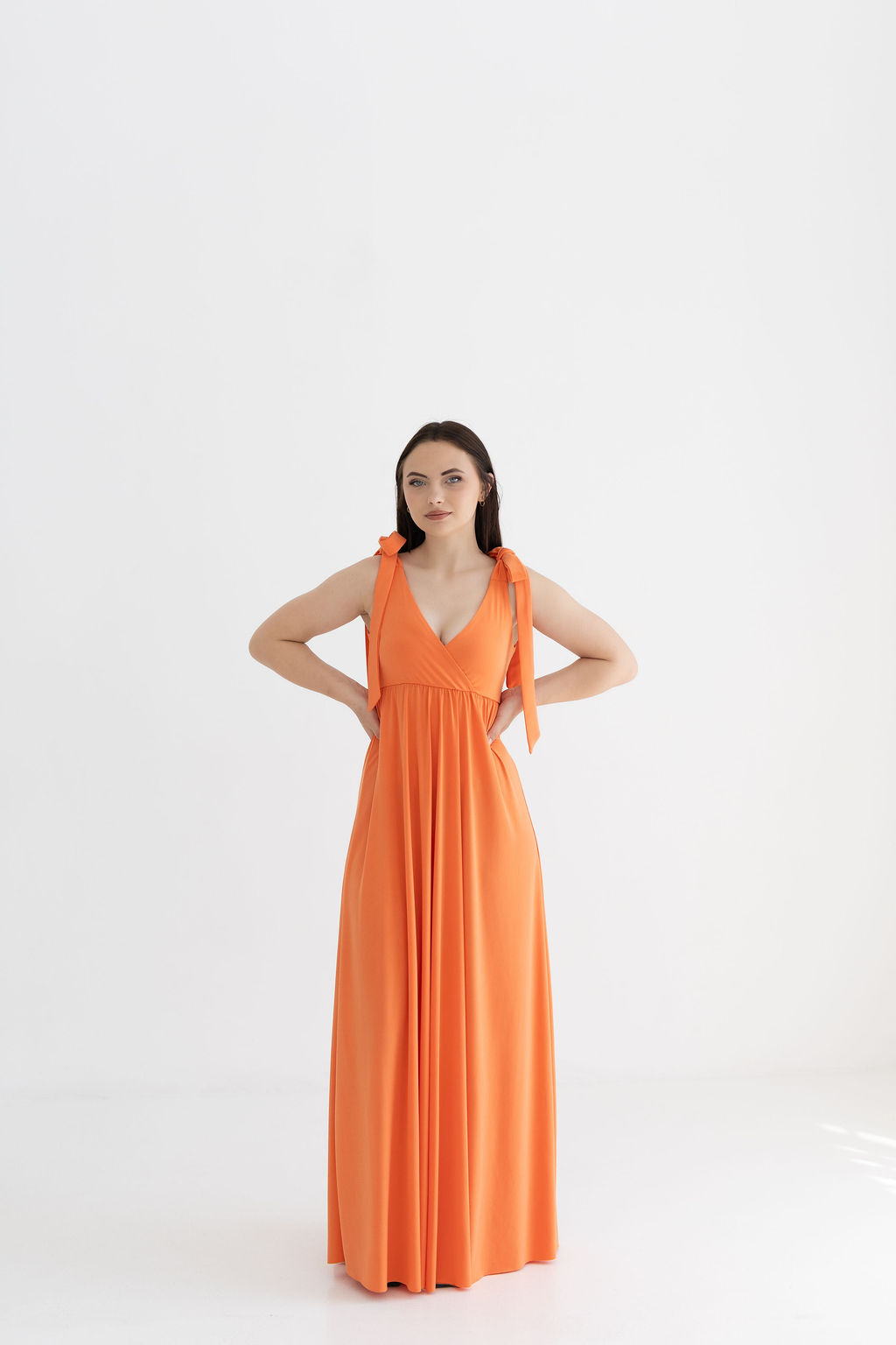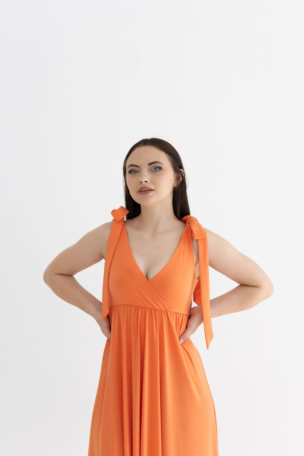 A stunning cross-over v-neck dress with bow detailing on the shoulders