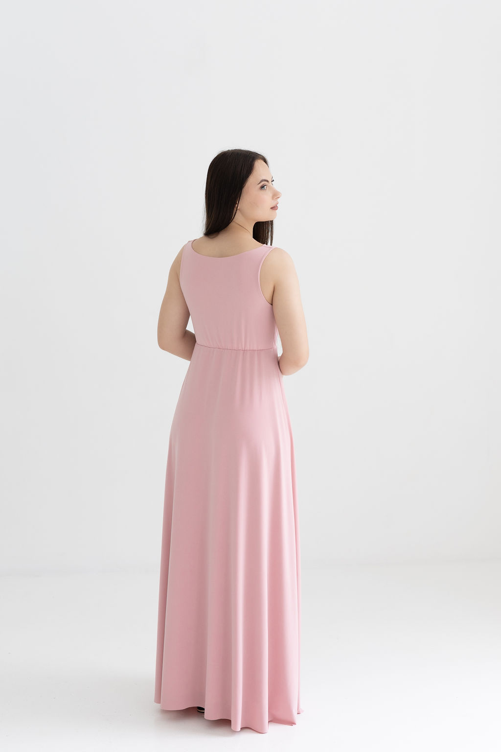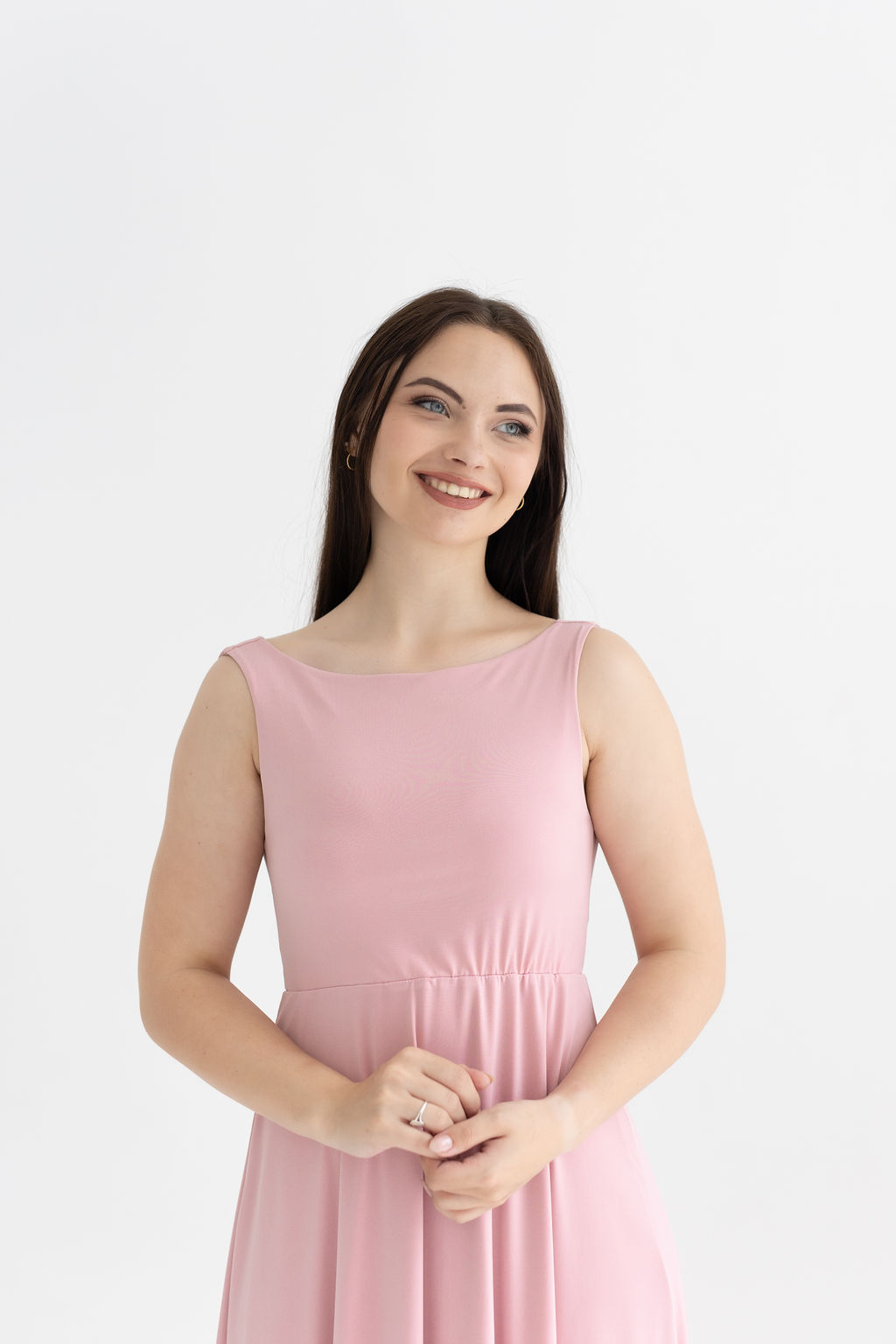 A classic high boat neck dress