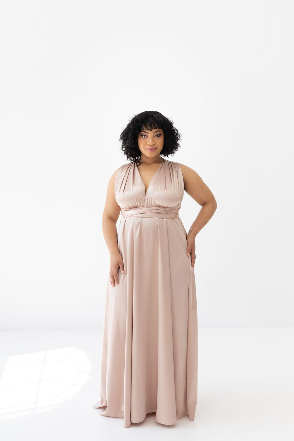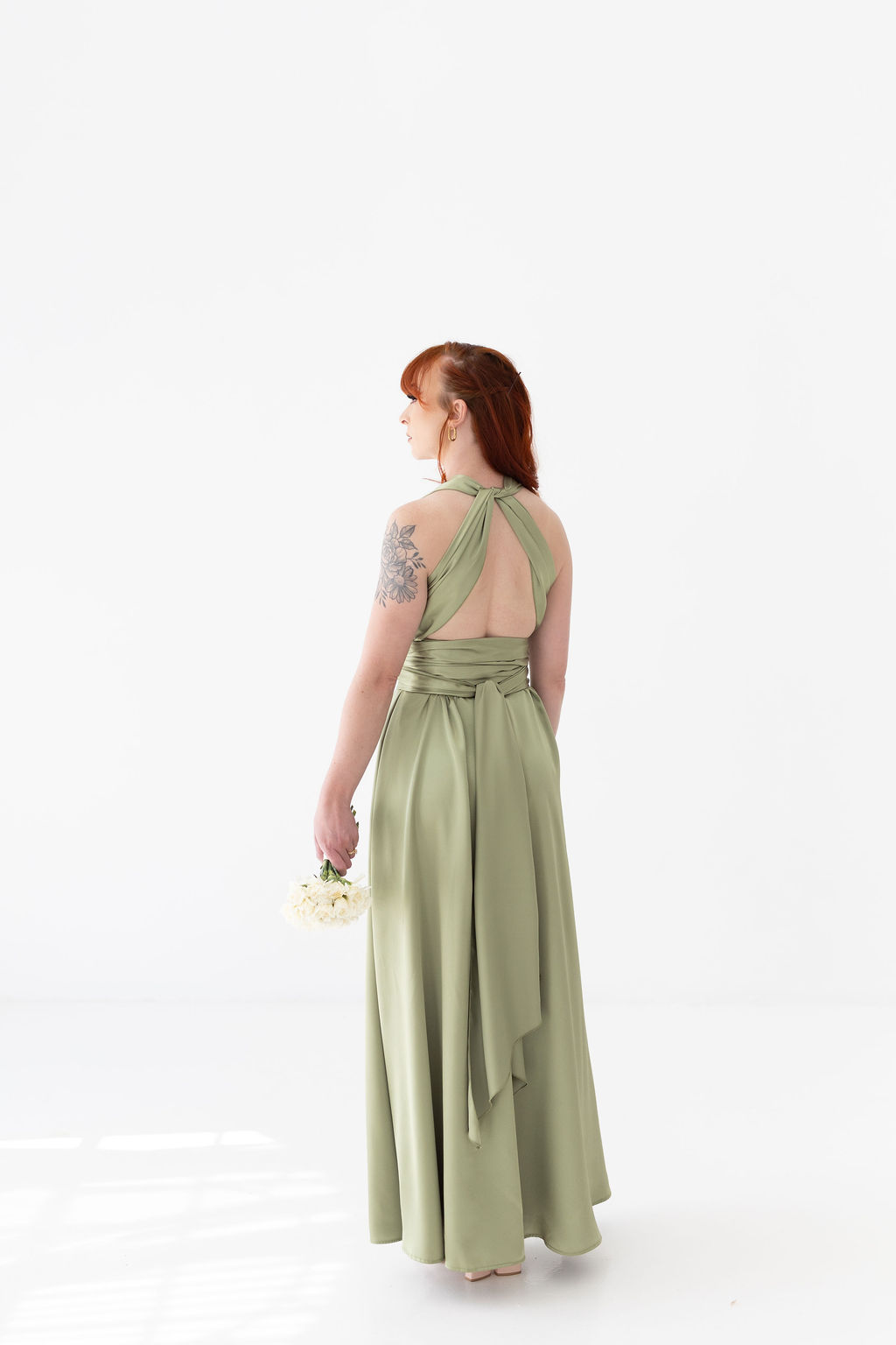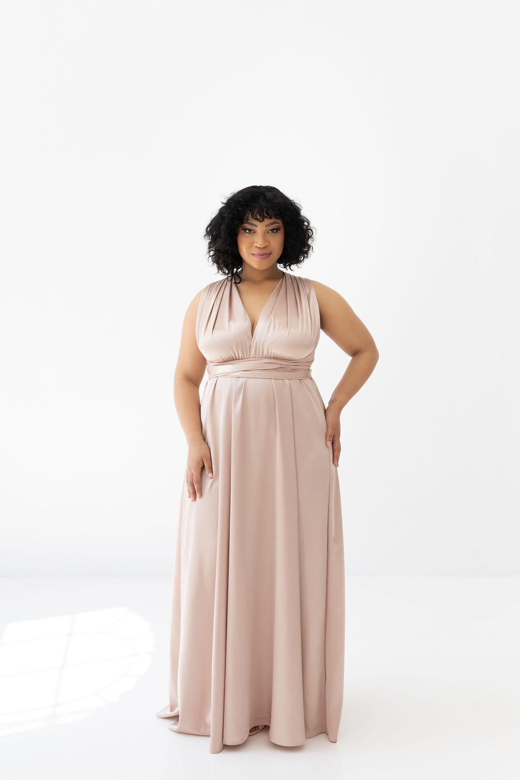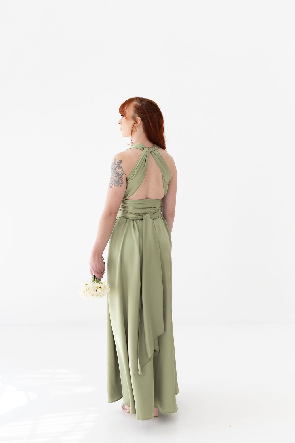 The Carmen Dress now in Satin, also known as Infinity, Convertible, Wrap or Multiway dress is a timeless and elegant dress. Fold the bands in different ways to achieve unique looks.