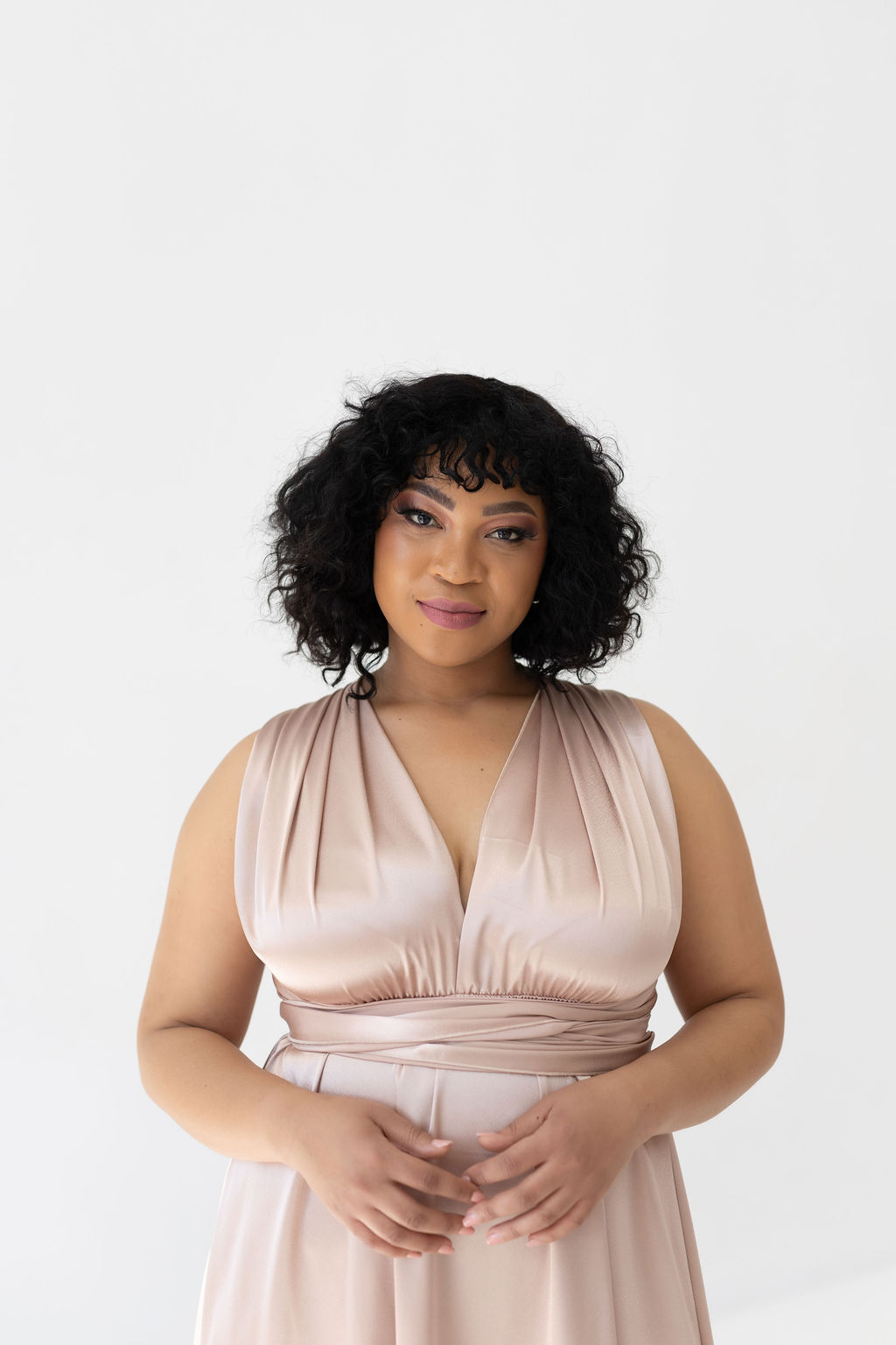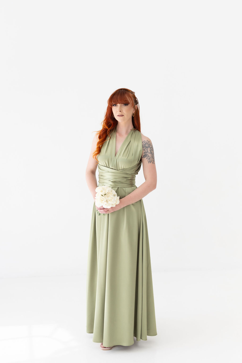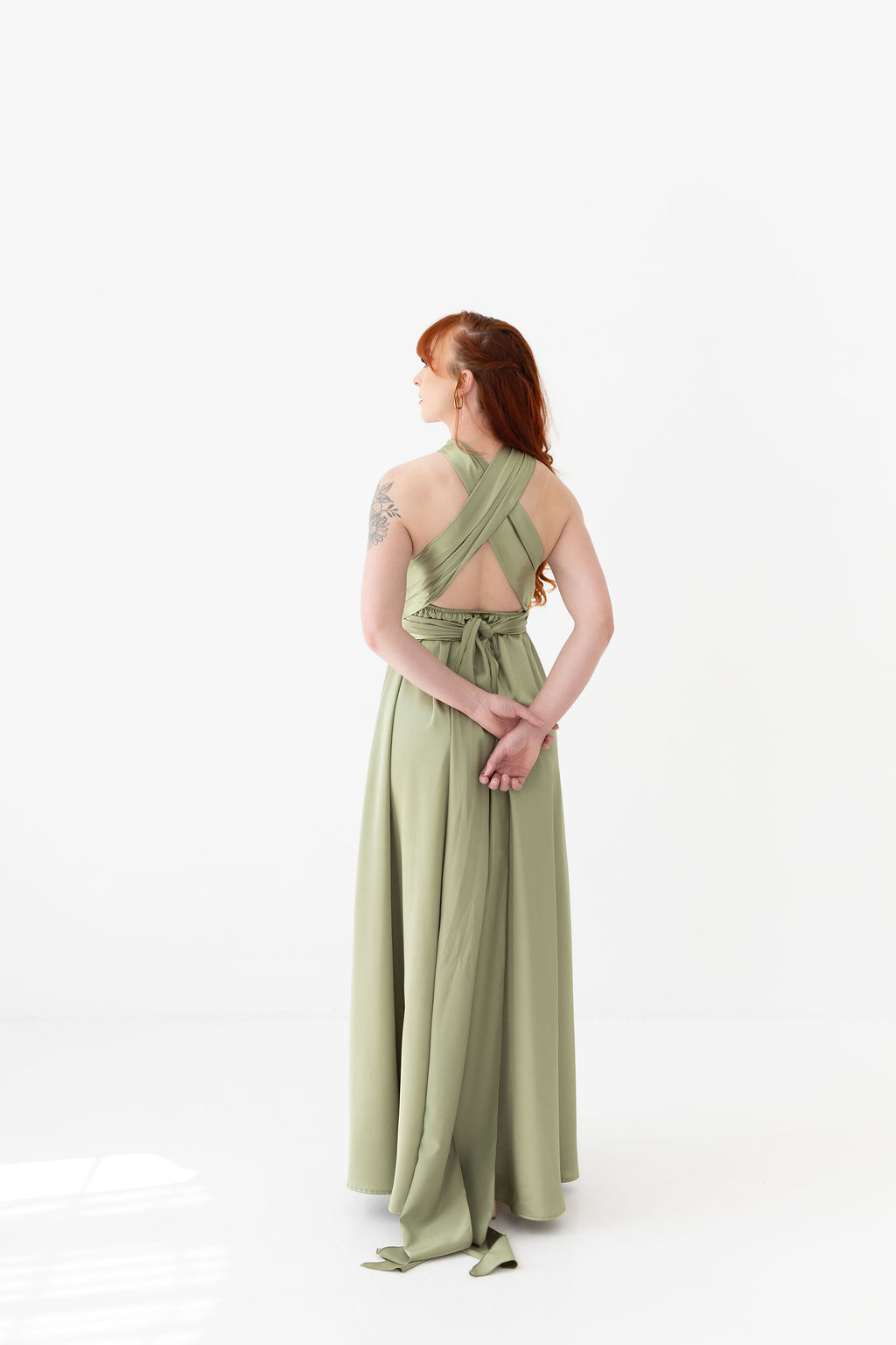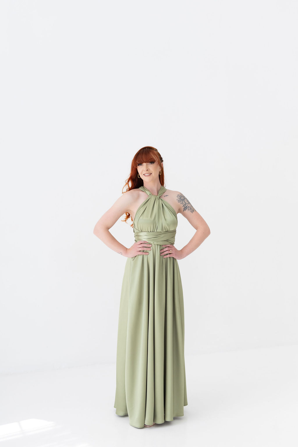 The Carmen Dress now availabel in satin fabric, also known as Infinity, Convertible, Wrap or Multiway dress is a timeless and elegant dress. Fold the bands in different ways to achieve unique looks